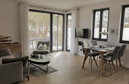Die Wohnung befindet sich im Ostseebad Baabe in der 1. Reihe mit herrlichem Meerblick durch die Bäume nur 50 m vom Strand entfernt. Geniessen Sie einen der schönsten Strände der