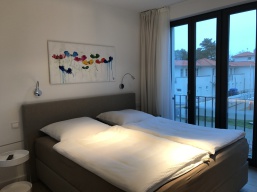 Den Hausgästen der 2016 fertiggestellen Strandvilla Andrea stehen eine Sauna mit Ruheraum sowie ein Waschmaschinenraum zur Verfügung. Die hochwertig ausgestattete Wohnung liegt im